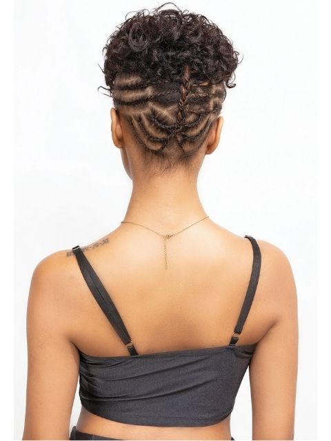 If you have long hair on the sides and back, braid your natural hair and style it with the topper wig.